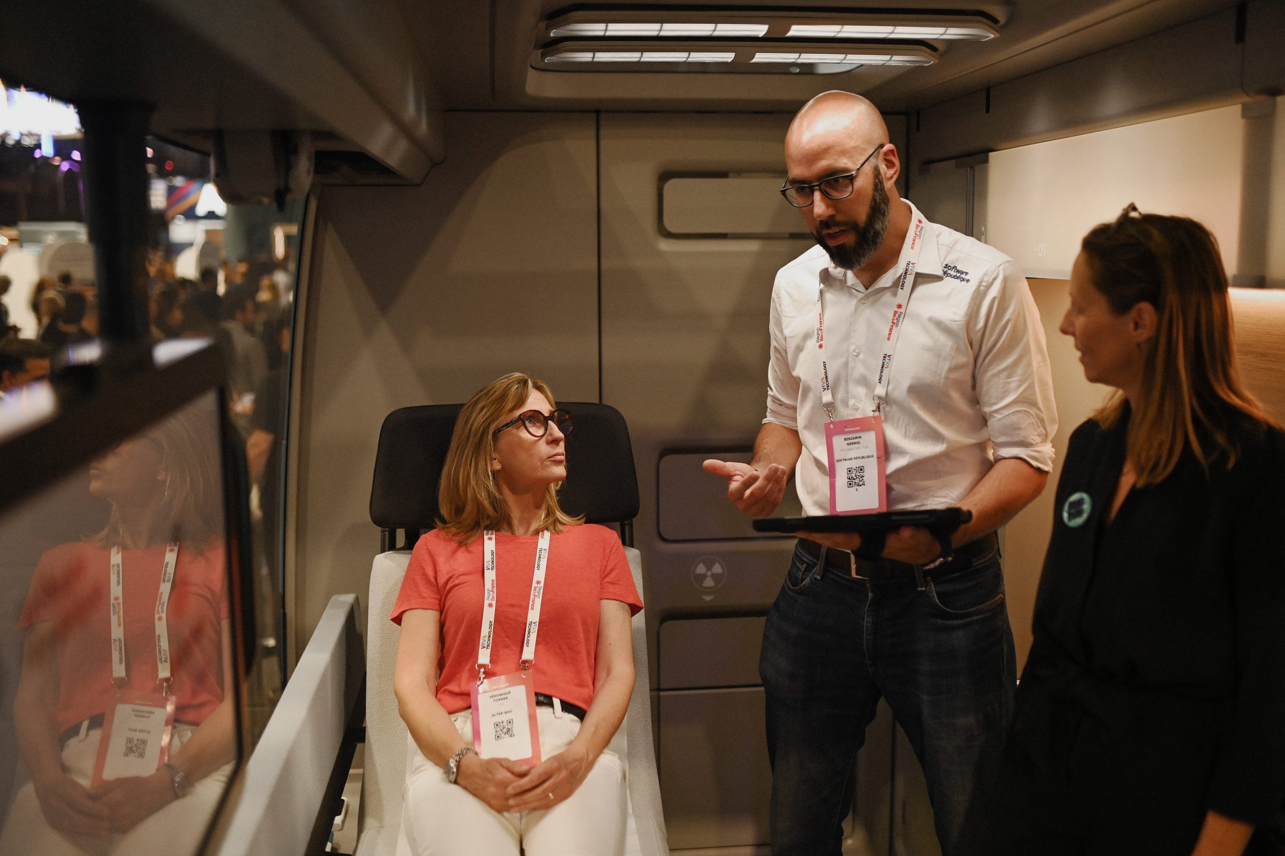 Aussi, parce que notre Commission Santé est l’une des plus actives au sein de Numeum, sa Présidente, Anne-Sophie Bouy, s’est rendue avec Véronique Torner à la Software République. Cette dernière est constituée notamment du groupe Renault et de certains de nos grands adhérents (Thales, Dassault Systèmes, Orange et Eviden). L’objectif ? Nous faire découvrir un cas d’usage innovant réalisé par ce groupement. Lequel ? Le lancement d’un véhicule autonome pour emmener des services de santé au plus près des citoyens/patients, partout en France.