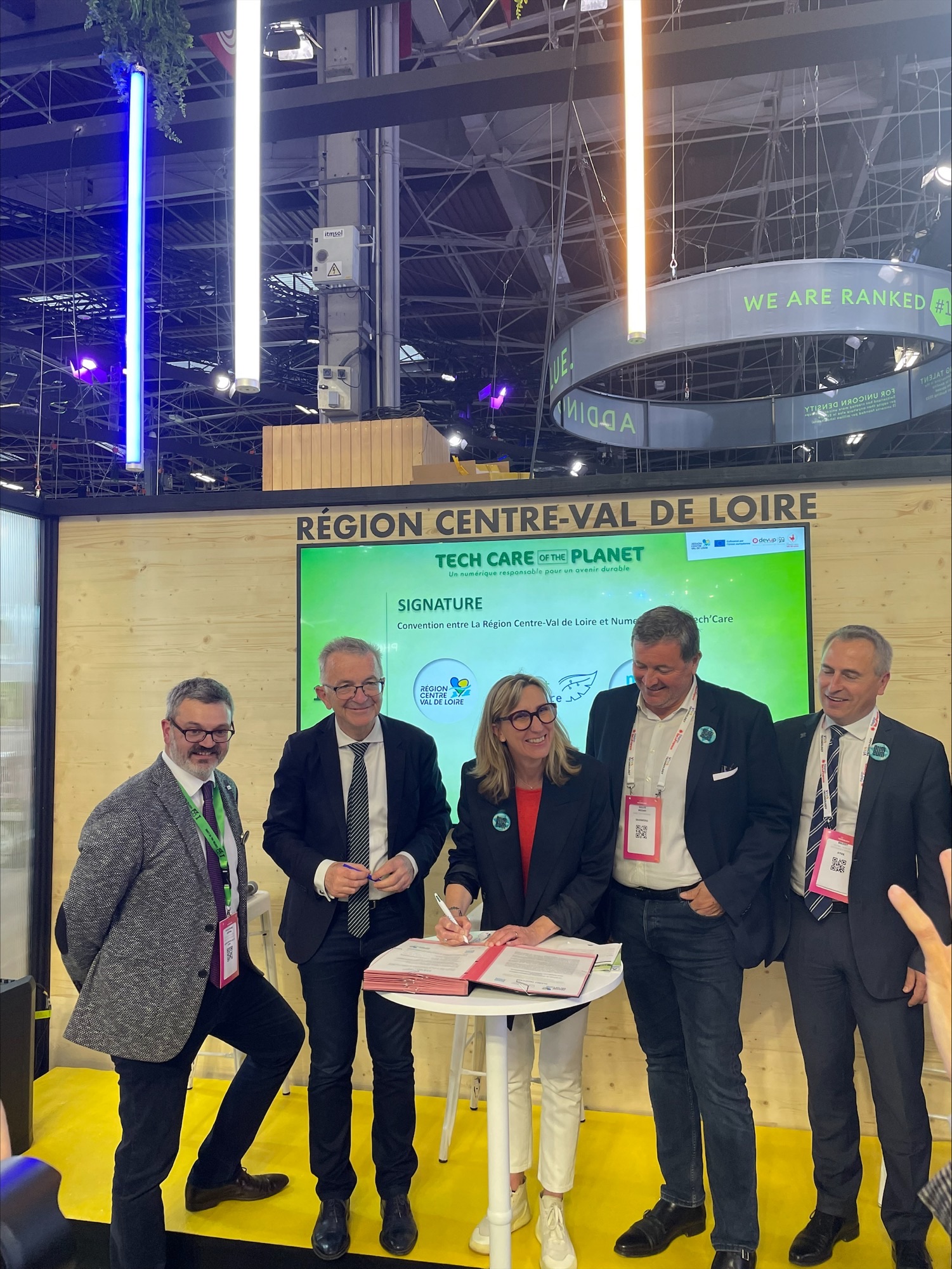 Mais parce qu’il n’y a jamais trop d’acteurs engagés, Vivatechnology était là aussi une formidable opportunité pour en embarquer encore davantage. Représentée par son Président, François Bonneau, la Région Centre-Val de Loire est ainsi devenue la première région française à s’engager officiellement en faveur de Planet Tech’Care. Une belle réussite collective notamment grâce au travail réalisé par Christophe Brizot, notre délégué régional en Centre-Val de Loire et Christophe Douane, Membre du bureau de la délégation régionale Numeum.