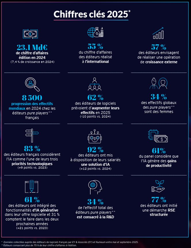 « 2025 confirme la solidité d’un secteur qui, malgré le ralentissement économique et les incertitudes, maintient une croissance élevée et conserve ses ambitions. Nous voyons émerger une nouvelle génération d’éditeurs, souvent “AI-native”, qui redéfinissent les modèles économiques et accélèrent la transformation du paysage logiciel français. De leur côté, les acteurs établis s’appuient sur un modèle économique robuste et une forte rentabilité pour investir et accélérer leur transformation. Cette combinaison entre stabilité et audace fait la force du logiciel français. Dans un environnement mondial où la compétition technologique s’intensifie, notre écosystème conserve un atout majeur : sa capacité à innover dans un contexte où les technologies et les modèles évoluent rapidement » affirme Jean-Christophe Pernet, Associé EY.