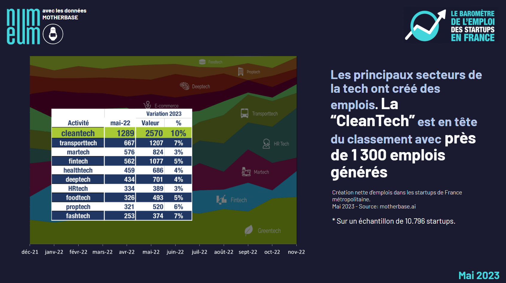 Sector analysis also reveals this upward trend: with a few exceptions (Retail, SportTech, etc.), the main tech sectors have created jobs. CleanTech comes out on top with nearly 1,300 jobs created.