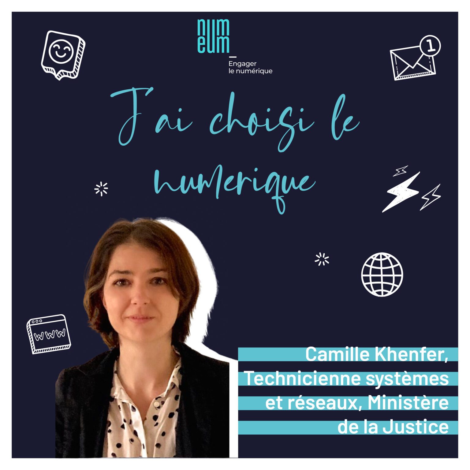 The Numeum podcast “J’ai choisi le numérique” features Camille Khenfer, systems and network technician for the French Ministry of Justice. She talks about her experiences, her professional reconversion and the cleavage that enabled her to think about digital and take the plunge.