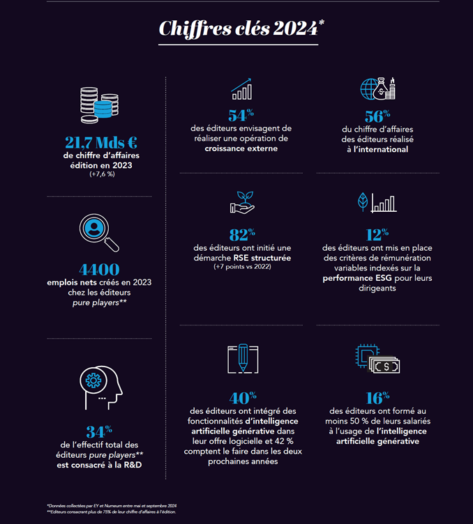 Depuis 14 ans, Numeum et EY dévoilent les résultats du Top 250 des éditeurs de logiciels français, le panorama incontournable du secteur. Pour cette édition, 265 entreprises ont participé à l’enquête, partageant leurs perspectives économiques et leurs ambitions. En 2023, les éditeurs de logiciels français continuent d’afficher une solide dynamique, marquée par une croissance de 7,6 %, légèrement en retrait par rapport à l’année précédente. Cette progression est largement soutenue par l’innovation, en particulier grâce à l’intégration massive des IA génératives dans leurs offres.
