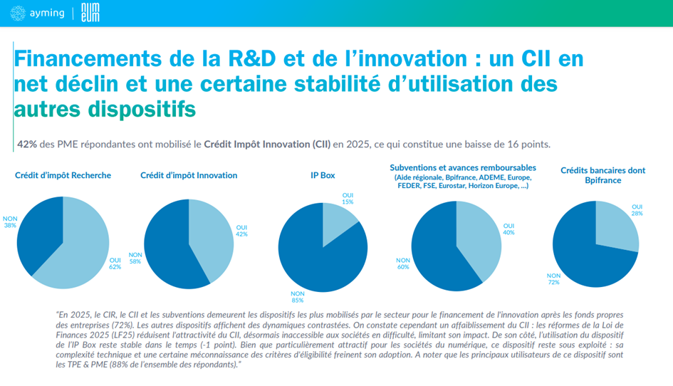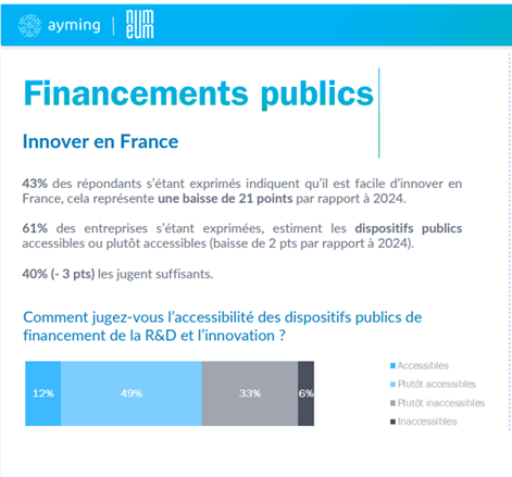 Alors que de moins en moins d’entreprises déclarent qu’il est facile d’innover en France (43% en 2025 contre 64% en 2024), les résultats de cette édition 2025 rappellent la nécessité de disposer dans notre pays d’un cadre fiscal et réglementaire, stable et lisible, propice à la recherche et à l’innovation.