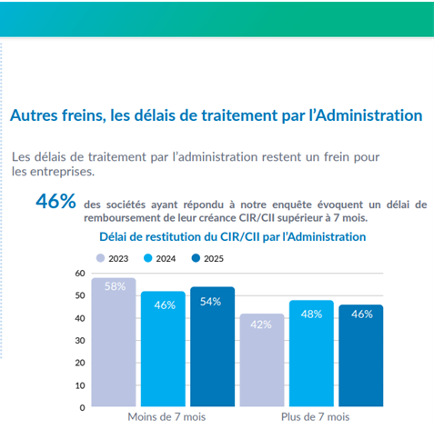 « Le baromètre met en lumière un signal préoccupant : 46 % des entreprises font face à des délais de restitution supérieurs à sept mois. À l’heure où les cycles technologiques s’accélèrent, ces décalages de trésorerie pèsent directement sur la capacité à maintenir l’effort d’innovation. », ajoute Bruno Coulmance, directeur du Consulting Innovation d’Ayming.